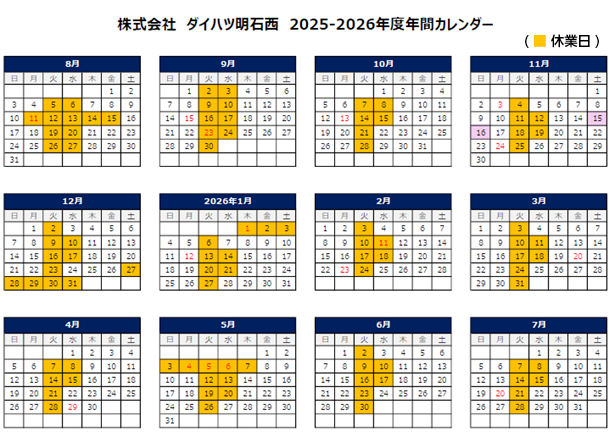 2025年10月1日より 下記の通り 定休日を変更致します。 今後も 良いサービスと商品の提供に努めて参りますので 引き続き ご愛顧の程 お願い申し上げます。 <ダイハツ明石西 定休日>