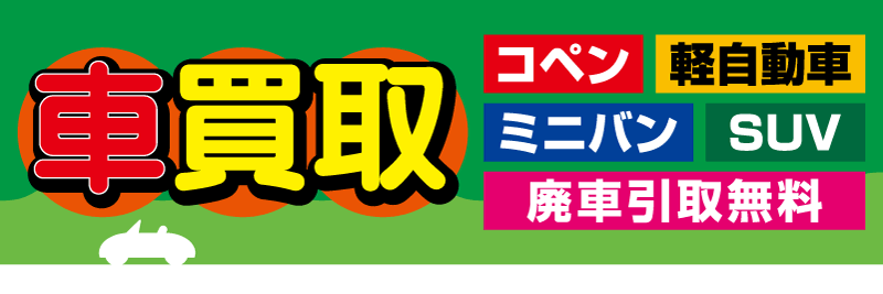 | 国産車全般OK 軽・ミニバン・SUV 4ナンバーバン他 メーカー不問で買取り |